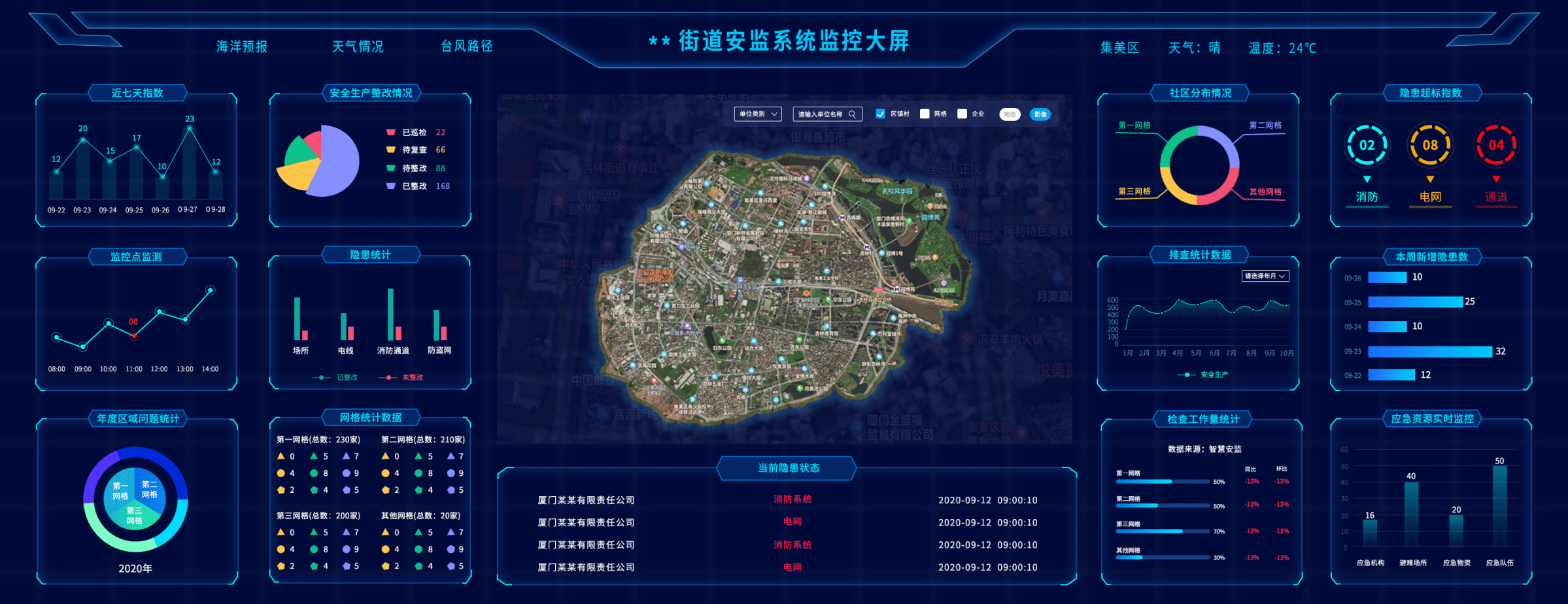 提供年度、季度、每月等不同时间段;社区、片区、企业主要隐患等